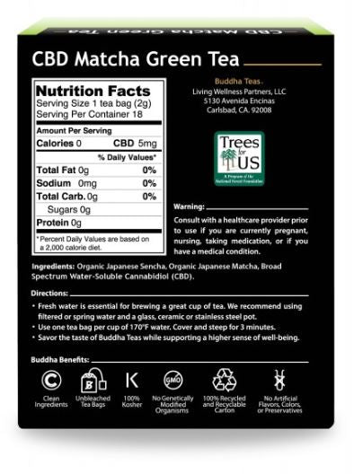Organic Japanese Sencha, Organic Japanese Matcha, Broad Spectrum water-soluble CBD.